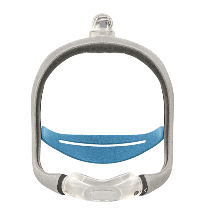 The AirTouch™ N30i is a highly comfortable nasal mask featuring a frame completely wrapped in soft, luxurious fabric that gently caresses your face and hair. Its innovative tube-up design eliminates tubing in the front, allowing you to sleep in any position without restriction.